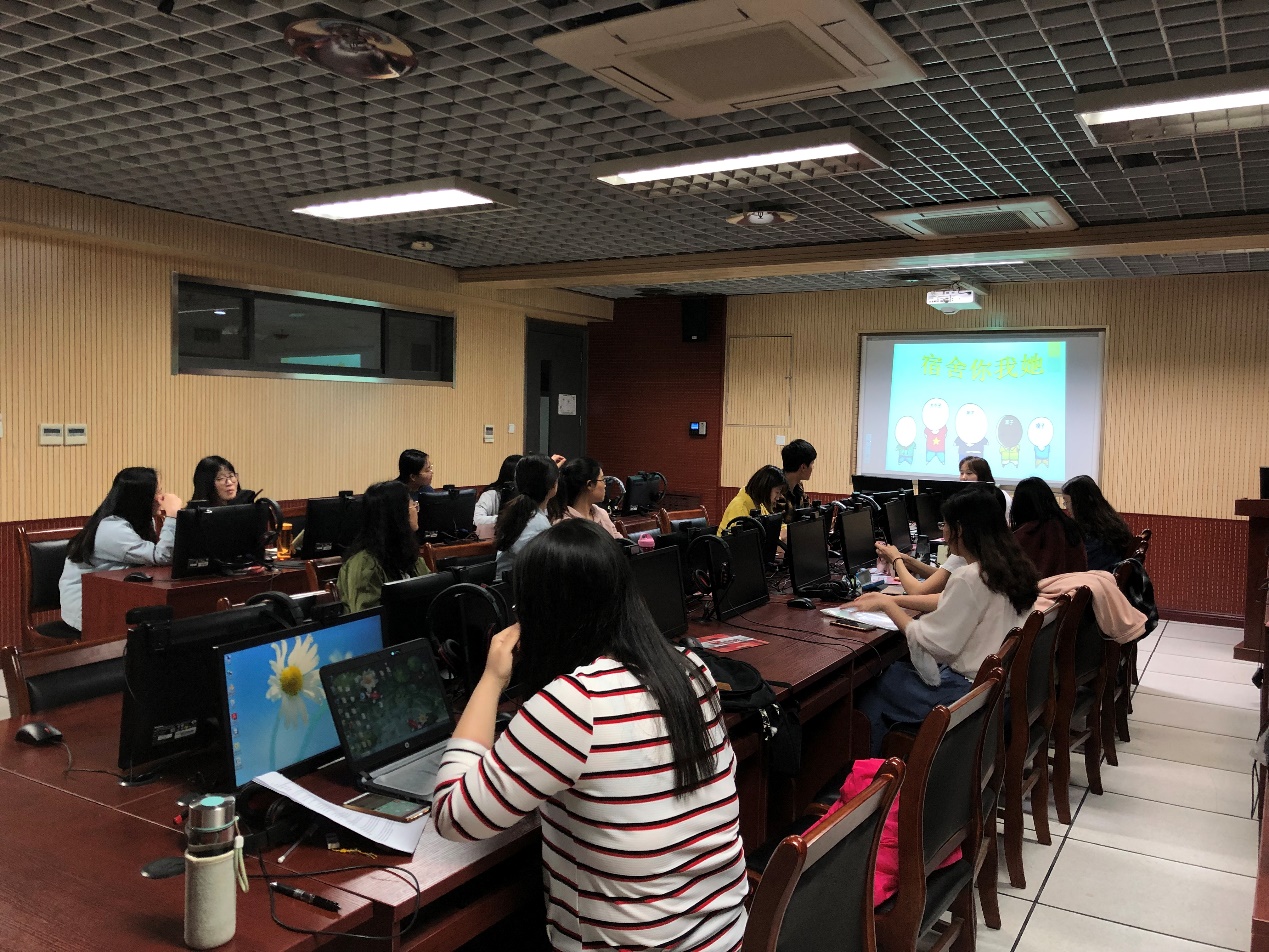5月28日,硕8098班同学相聚一堂,在外文楼B609召开心理健康活动月主题班会,主题为“宿舍你我她”,本次活动由心理委员秦丹丹主持。