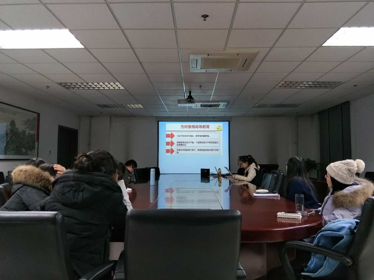 之后,支部组织委员张英贤同志带领大家共同学习了习近平同志在全国高校思想政治工作会议上的讲话精神。通过观看会议的相关视频,同学们感受到了国家对高等教育的重视,以及培养人才的目标。习近平主席指出,教育强则国家强,要实现中华民族的伟大复兴,必须重视教育的地位和作用。张英贤同学认为,作为一名享受高等教育的研究生,我们应该与国家的目标保持一致,坚持“四个正确认识”,勇于走在时代前列,学好专业知识,在以后的工作岗位上做出更多的贡献。随后,高玲同志为大家分享了自己在求职过程中的经历和感悟,认为用人单位对外语专业的毕业生期望很高,尤其是口语能力,因此,大家一定要提高自己的口语水平,才能找到满意的工作。通过这次学习,支部成员意识到了要培养自己的国际视野,认识到时代责任和历史使命,更加坚定了学好本领的自信心。