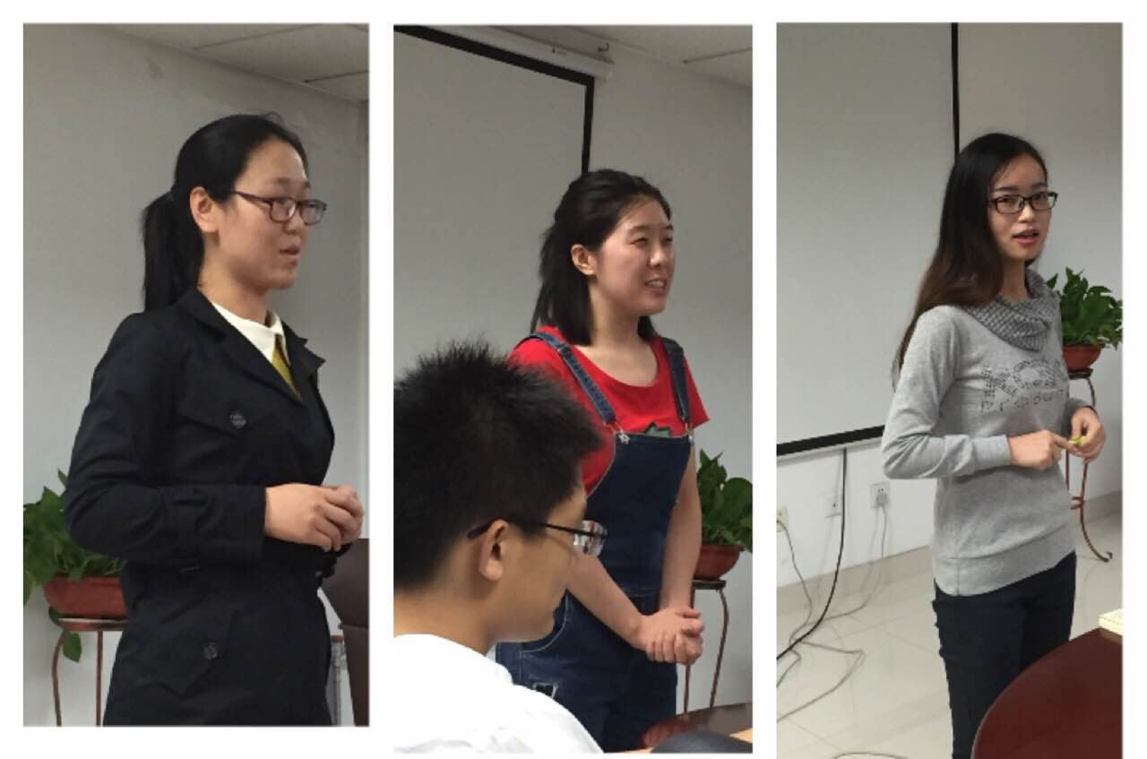 首先,来自2015级MTI方向的汪飞、闫田田、赵文静三位同学分享了自己学习的经历和经验以及感受。她们提到,在自己的研究生生涯里,一定要抓住一切机会锻炼自己,把握好自己的心态,广交朋友。“吃亏就是占便宜”,要在不断的挫折中磨练自我。MTI硕士只有两年,所以他们希望学弟学妹们要利用好时间,在保证学业的同时,多参加各类活动,增强自己的竞争力。三位同学还分享了自己在做翻译工作中的一些趣事和经验,使同学们收获颇丰。