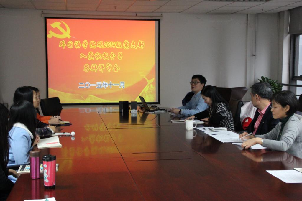 硕2014级党支部9名入党积极分子参加答辩。答辩评审会由支部书记陆天舒主持。