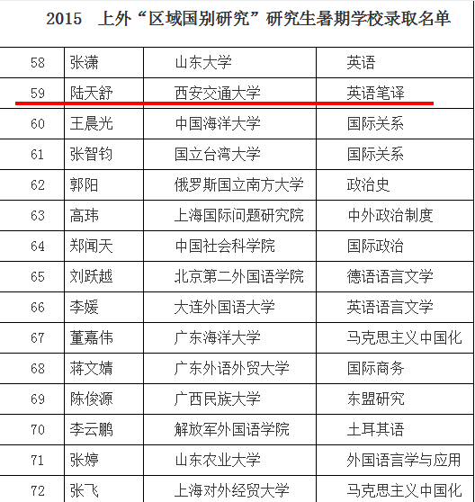 唯一入选学生,同时也成为西北地区高校中唯一被录取的研究生。