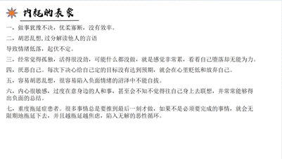 其次,同学们学习了精神内耗的应对方法,包括:停止活在他人眼中;停止后悔;停止苛求完美;停止纠结;停止陷入消极;停止自我设限。