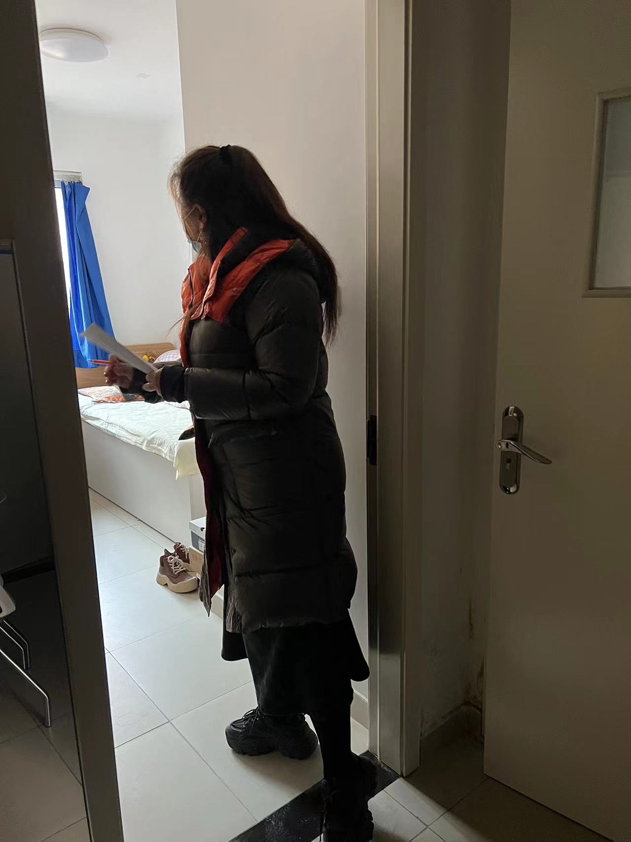 辅导员薛璇玑带领助管和兼职辅导员,协同物业、后勤保障处工作人员开展学生宿舍走访活动。
