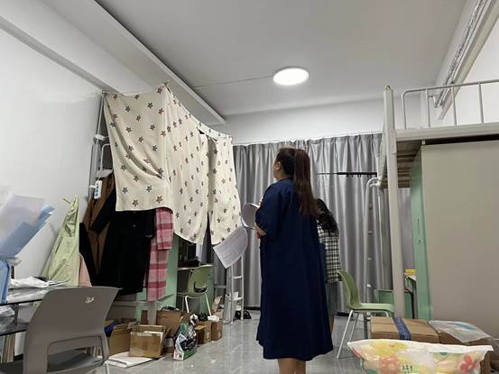 辅导员薛璇玑老师带领兼职辅导员和助管同学,协同物业、后勤保障处工作人员在南区及惠园公寓进行了寝室安全卫生检查工作,以期确保学生居住环境的整洁有序、用电安全无虞,排查可能存在的违禁物品,共创安全文明、整洁卫生、温馨有序的学习和生活环境。