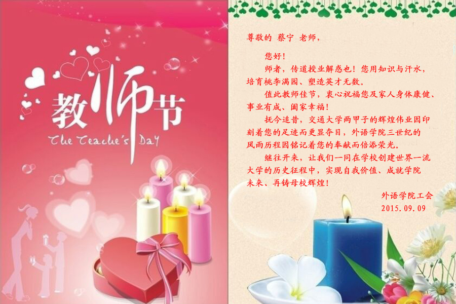 2015年教师节来临之际, 免费色情影片 工会向每位 免费色情影片 教职员工单独发送贺卡,祝福教师节快乐。
