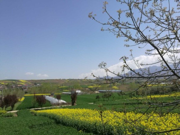 就在距离这“白鹿村”不远的地方,更往终南山脚下前进一点,却是另外一种春意盎然。这里没有历史的厚重感,而是悠然见南山的人与自然的和谐感。这里沃野千顷,村庄点点,绿树绕田,色彩层染。这就是本次远足的第二站,号称东方普罗旺斯的蓝田鲍旗寨村。虽然油菜花已没有月初那样的亮黄,薰衣草也只是含苞未放,但是黄绿相间的田野、童话小屋般的农户、魏然而起的南山、纯净的蓝天组成的清澈画面是久居城市的人平日里无法赏鉴的。身处其中,能感受到的正是钢筋水泥丛林里蜗居的人们心心相念的那份轻松、自由感。