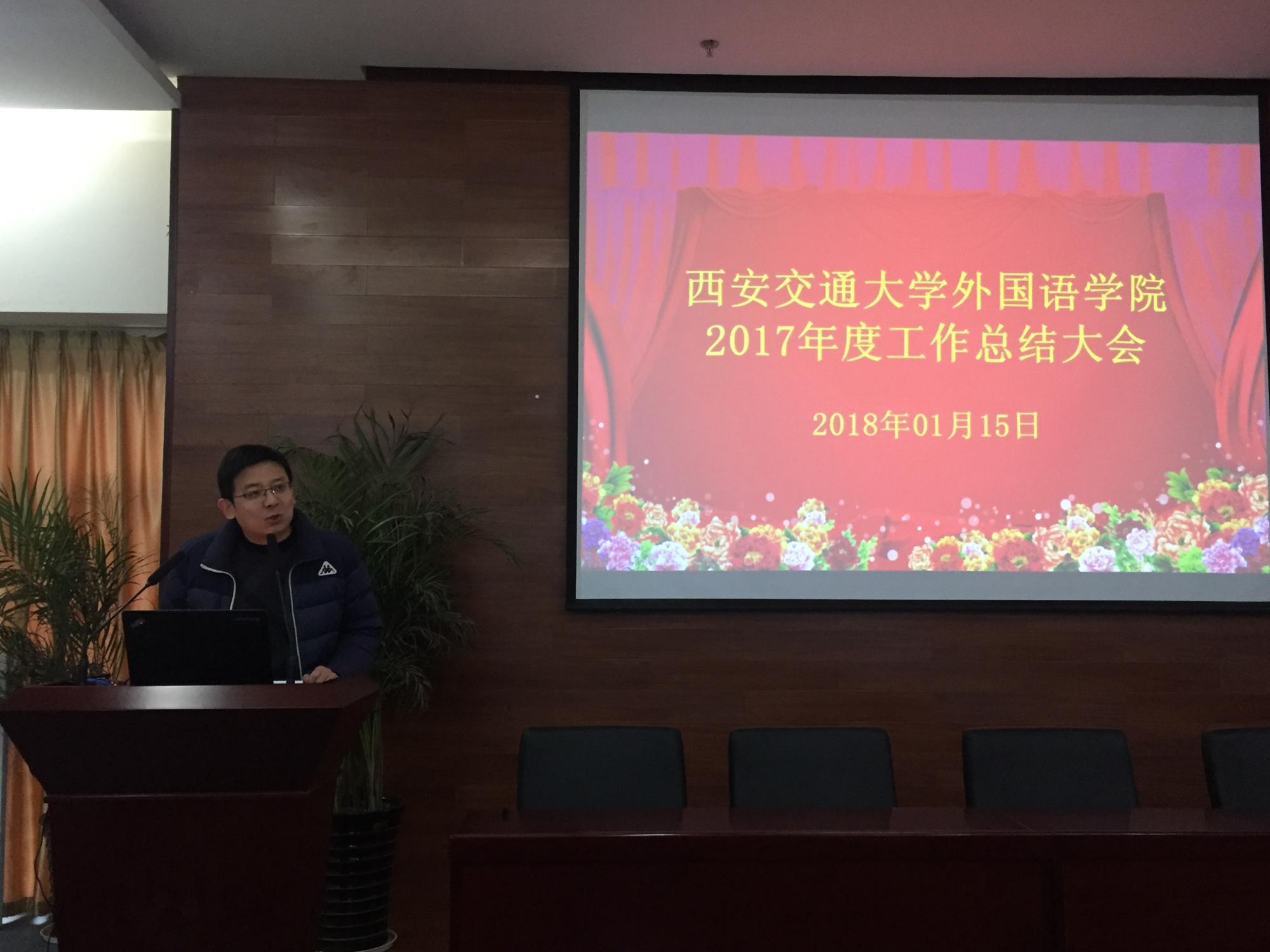 在外文楼B1001报告厅召开全院教职工大会,总结2017年度工作,传达落实学校寒假工作会议精神,会议由学院工会主席王华主持。