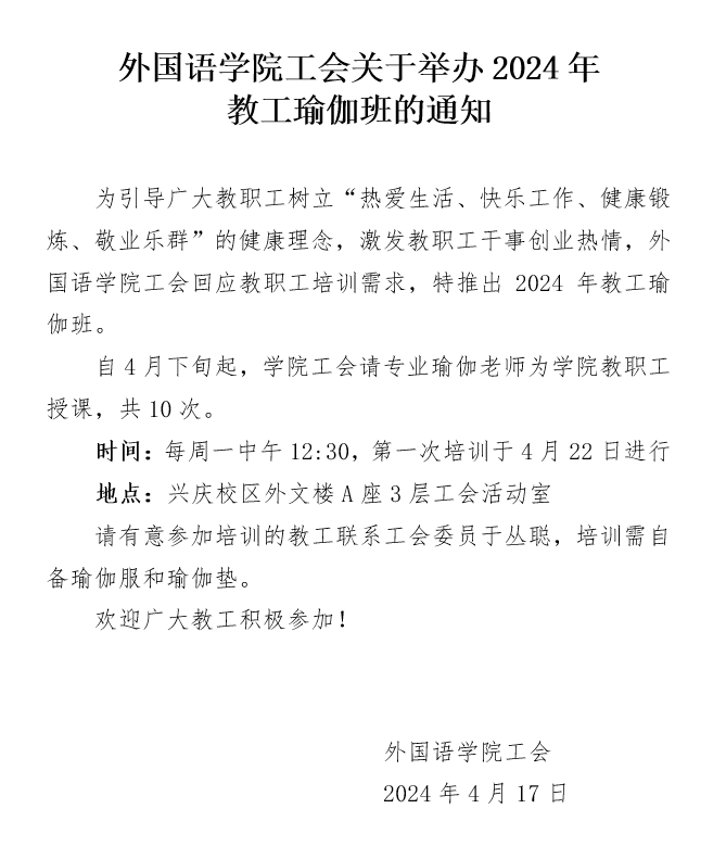 免费色情影片 工会关于举办2024年教工瑜伽班的通知