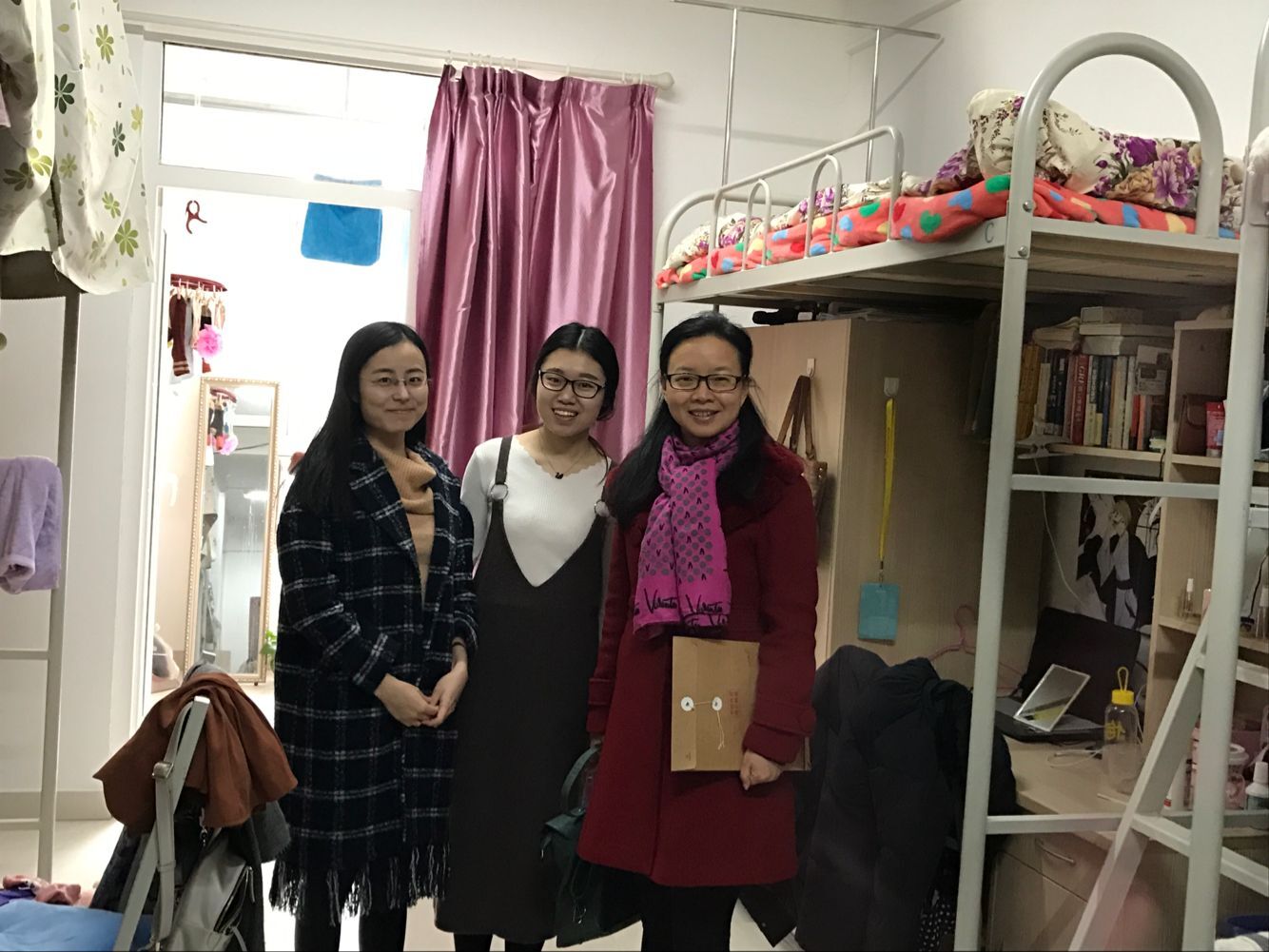 1月13日中午,学生工作专职委员许明和辅导员马薇走访学生宿舍,与学生交流,提醒学生合理规划假期时间,注意安全。