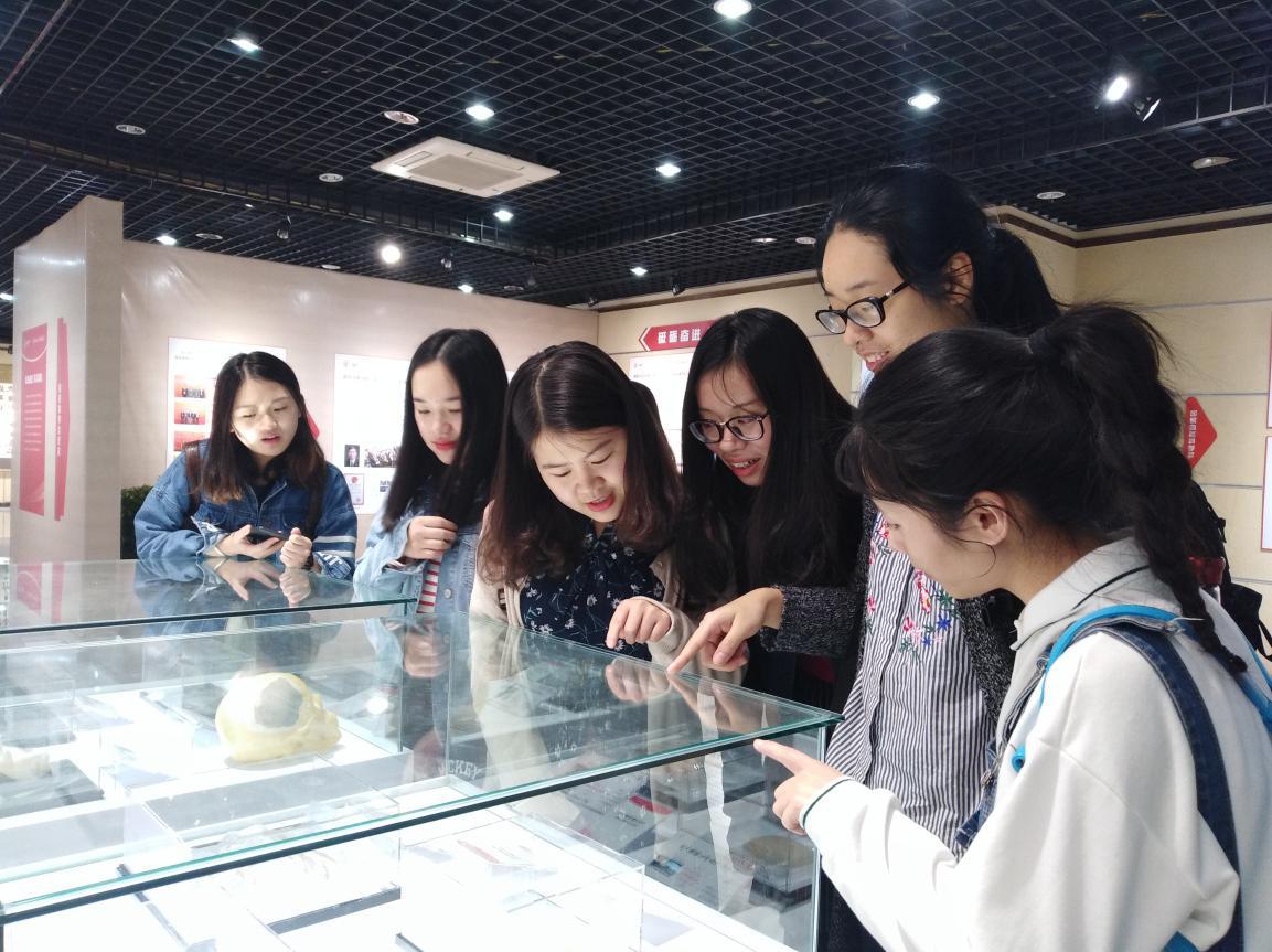 随后,大家前往图书馆参观西迁实物展。看到西迁教授手写的笔记,大家纷纷感慨西迁教授当年治学的严谨和认真。参观过程中,西迁馆角落的一个小柜子引起了大家的注意,柜子里放有读书卡片,记录他们当年阅读的期刊目录。大家感叹当时的西迁教授们虽然条件艰苦,但依然精勤求学、笔耕不辍,孜孜不倦学习国外先进技术,谋求国家科技事业新的发展。实物展仿佛让大家回到那个特殊的年代,跟随西迁教授的步伐,与祖国同呼吸共命运。
