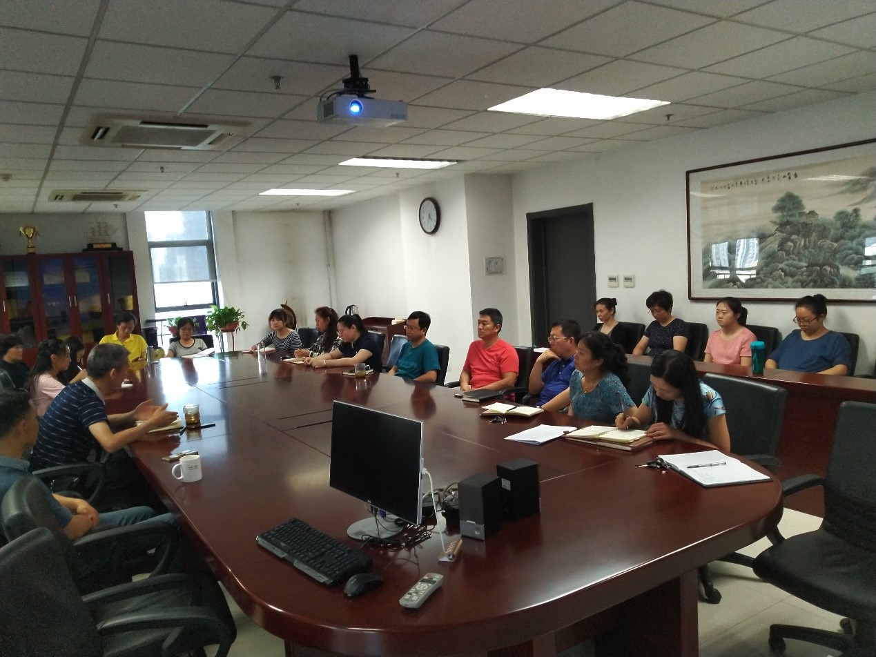 机关党支部在外文楼B912会议室传达落实暑期工作会议精神,学习“习近平总书记在两院院士大会上的讲话精神”和全国组织工作会议精神,会议由支部书记马薇主持。
