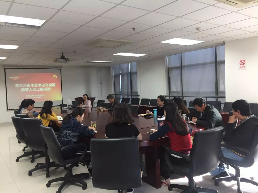 机关党支部在外文楼B912召开支部会议,学习全国教育大会精神、抵御宗教渗透相关内容、全国宣传思想工作会议精神和《中华人民共和国监察法》及修新修订的《中国共产党纪律处分条例》。会议由支部书记马薇主持。