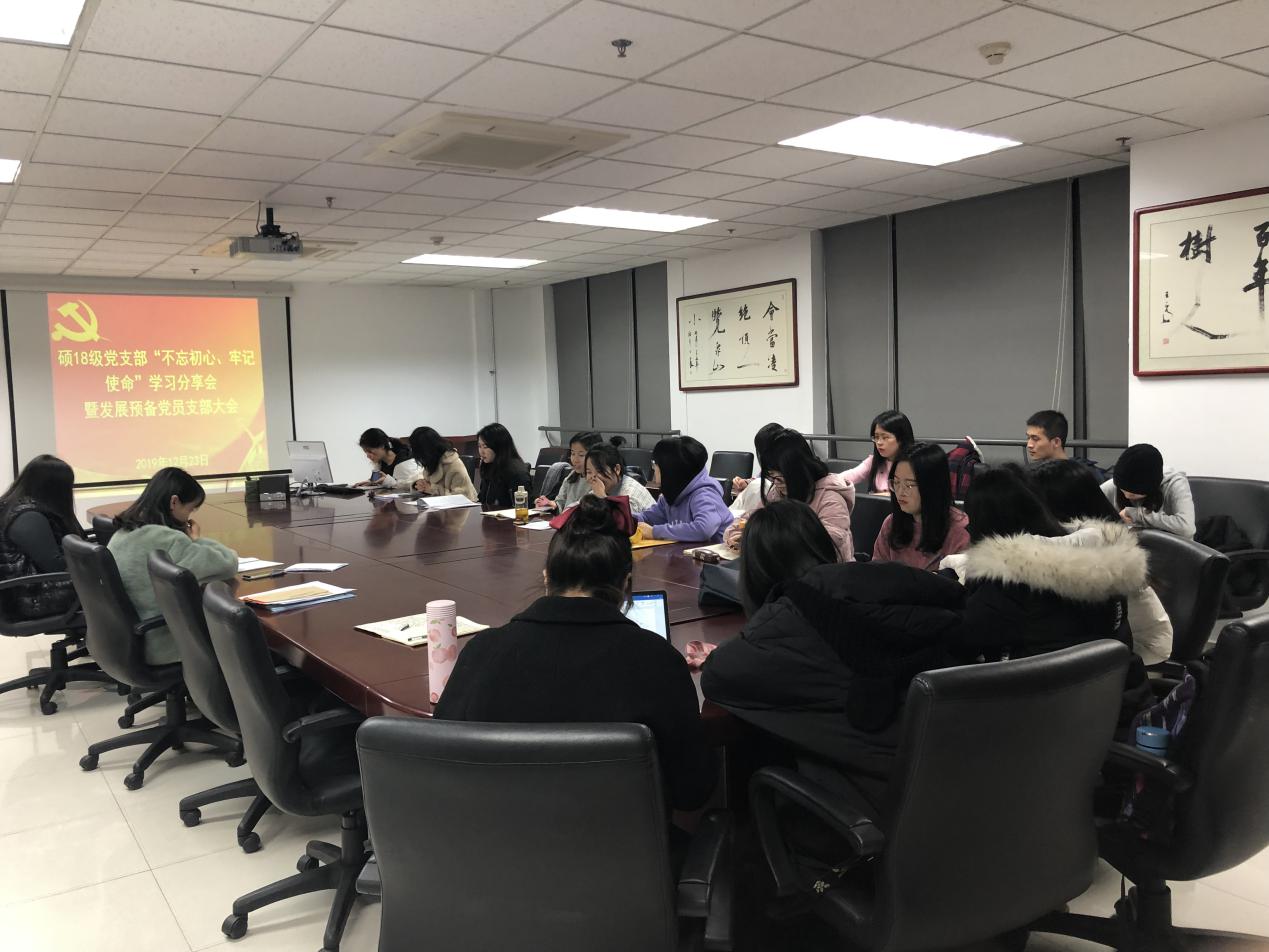 硕2018级党支部开展“不忘初心、牢记使命”学习分享会暨发展预备党员支部大会