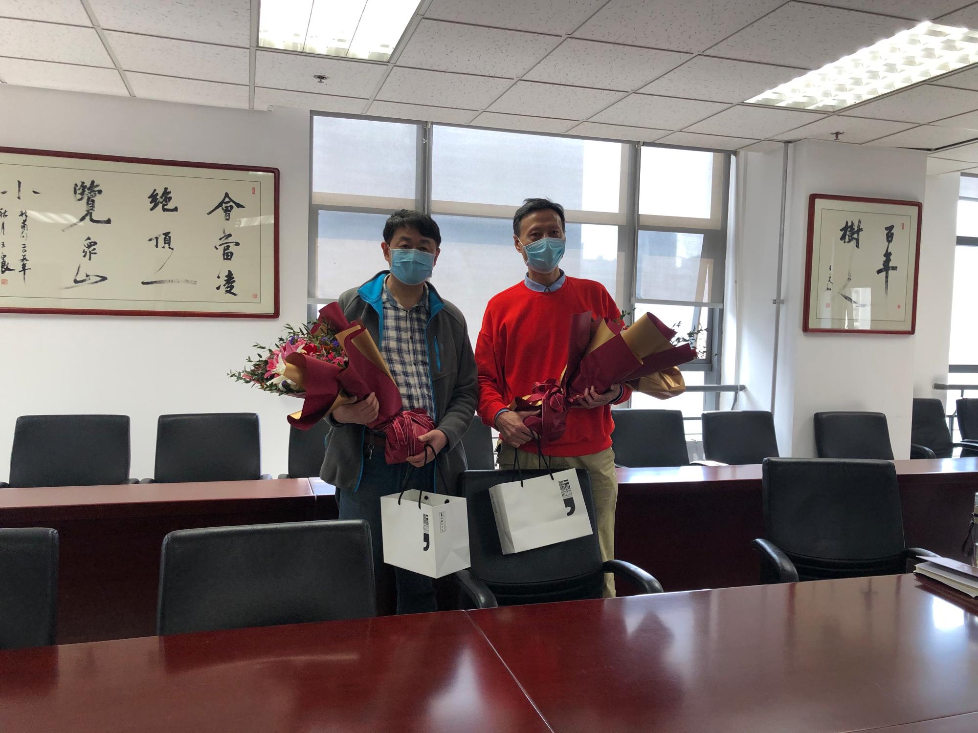 集体学习之后,支部为即将退休的党员喻建东、蒋振群两位老师举行荣休仪式。两位老师追忆起在职工作几十年的难忘经历,在场的教职工对两位老师多年来在工作中给予的无私帮助表示感谢,大家纷纷感慨时光荏苒、岁月如梭,奋斗的人生最幸福。最后,支部书记马薇为两位老师送上鲜花,祝愿两位老师退休生活愉快,继续关注学院发展。