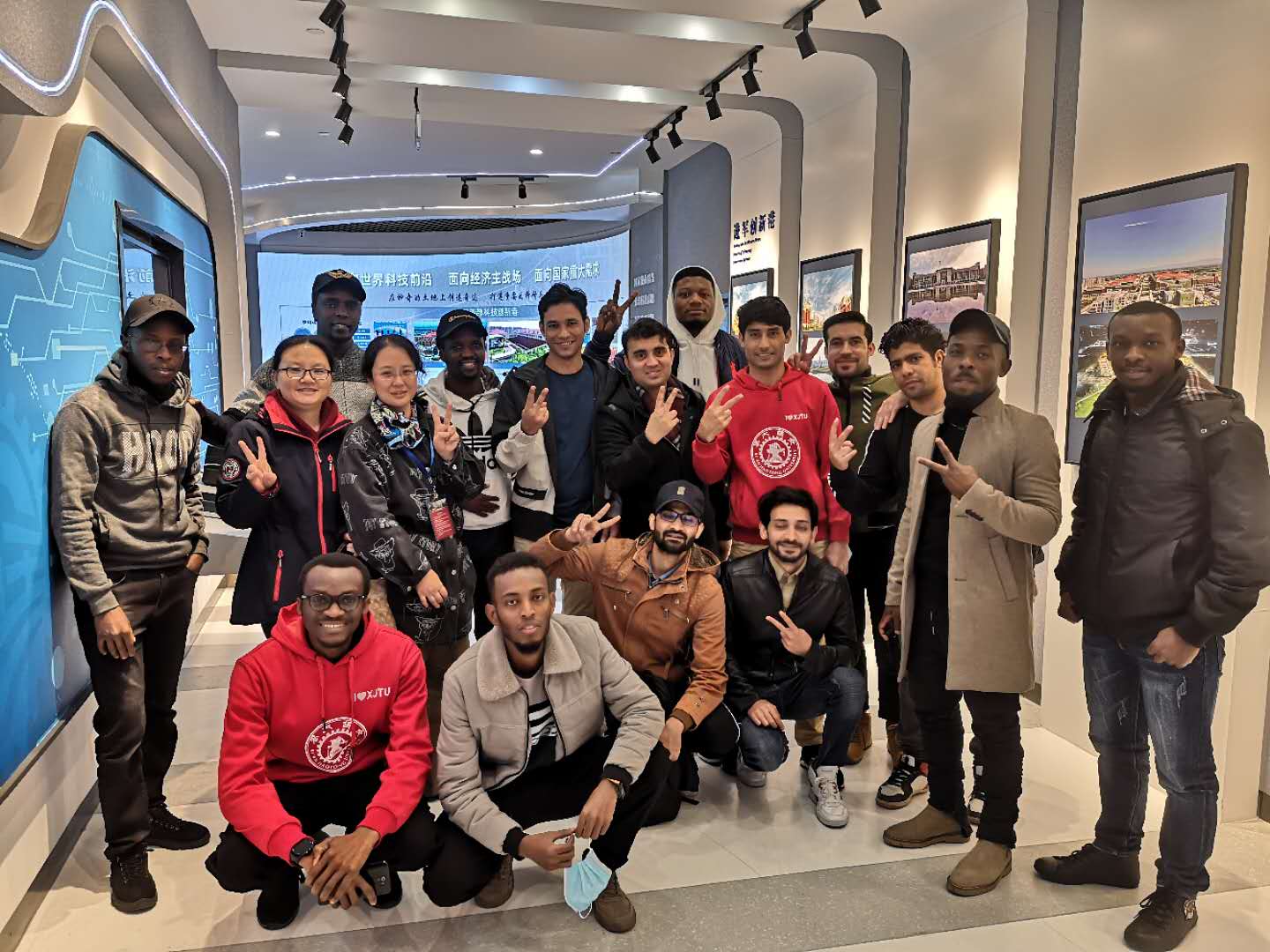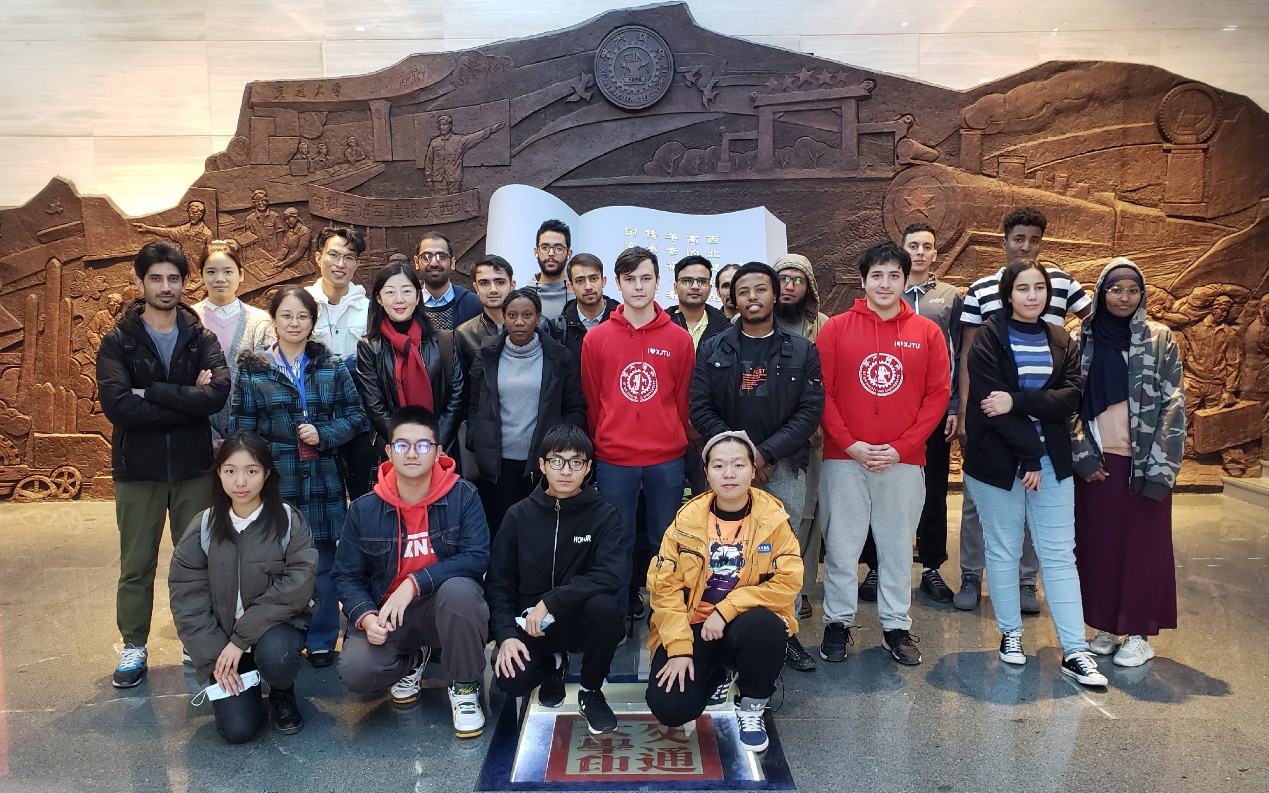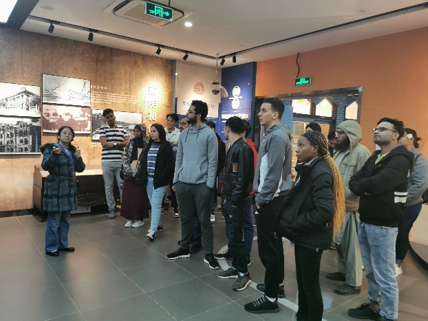 在参观过程中,杨芳老师的英文讲解流畅、清晰、全面、富有感染力,不仅吸引了本次参加活动的中外同学,还吸引了大量博物馆里参观的其他同学和社会人士。参观结束后,中外同学进行了深入和广泛的交流,话题包括外语学习、创新港、专业发展、兴趣爱好和本国文化风俗等。王树国校长在2020级研究生开学典礼上讲到,“希望你们(指留学生)来到这里,能够多多学习一些汉语,让我们交流起来更方便,我也希望中国的学生多学一些外语,这是人类文明相互交流的必然结果。”通过此次特殊的党支部共建活动,我们为中外学生架起了一座沟通的桥梁,希望中外同学一起学习我们的校史,一起学习“西迁精神”,一起为学校的发展积聚“精神力量”。