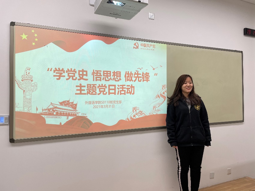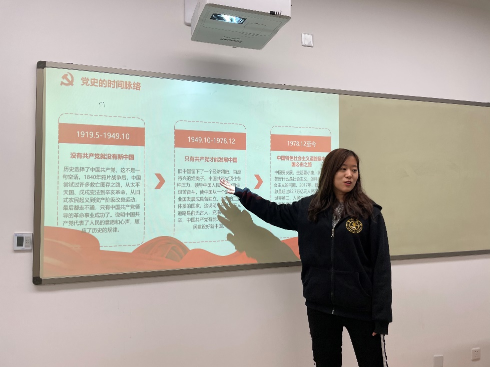 硕0118班党支部于涵英楼2085教室开展了“学党史 悟思想 做先锋”主题党日活动。会议共分为三项内容:梳理党史脉络、重温党员事迹、交流学习感想。