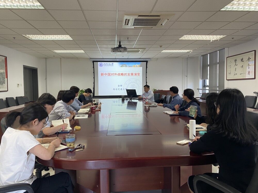 金新副教授的报告以国际环境、国家利益和政策主体变化为国家对外战略演变的动因,分改革开放前和改革开放后两阶段,向大家讲解了我国对外战略发展演变历程。金新老师的讲座将外交理论与史实紧密结合,简明扼要,使大家在很短时间内对我党外交战略发展史有了清晰深刻的认识。
