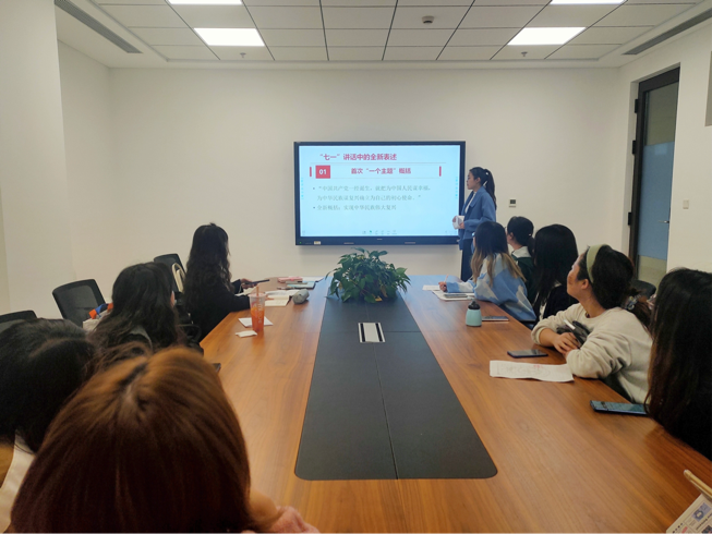 此次组织生活会共有三个环节。首先,吴鸽向大家讲解了“七一”讲话中的全新表述,包括“首次‘一个主题’概括”、“首次总结伟大的建党精神”、“实现中华民族伟大复兴进入了不可逆转的历史进程”等。支部成员认真学习习近平总书记的“七一”重要讲话,认真领悟这些讲话中出现的全新表述内容。