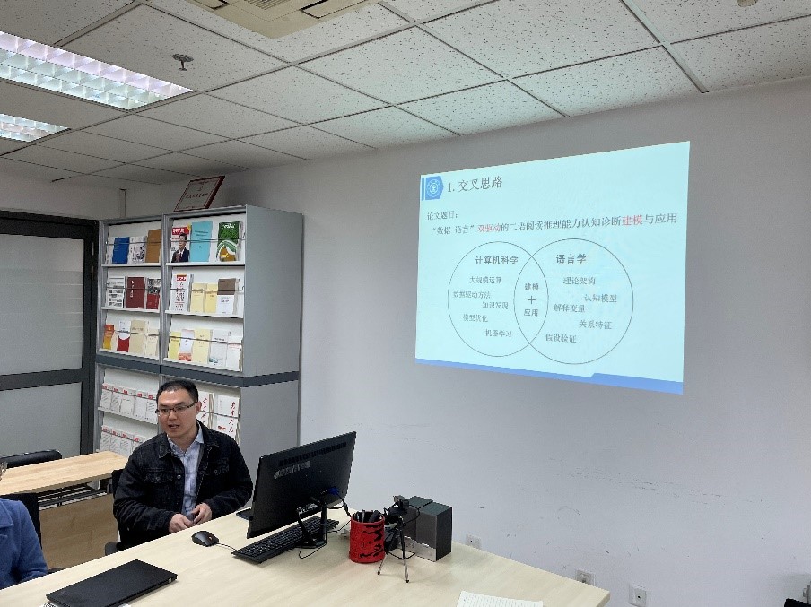杜文博博士生的论文题目是《“数据—语言”双驱动的二语阅读推理能力认知诊断建模与应用》,他将机器学习和统计分析结合在一起,探究不同水平组的阅读表征和相应的认知诊断模型建构。