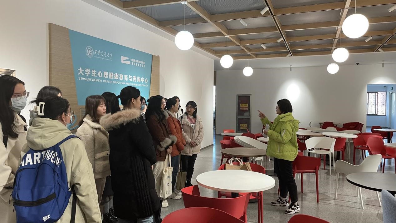 接着亢滢向同学们先后介绍讲解了各个房间的功能、布局以及屋内设备,包括心理咨询室、集体活动室和放松按摩间等房间。