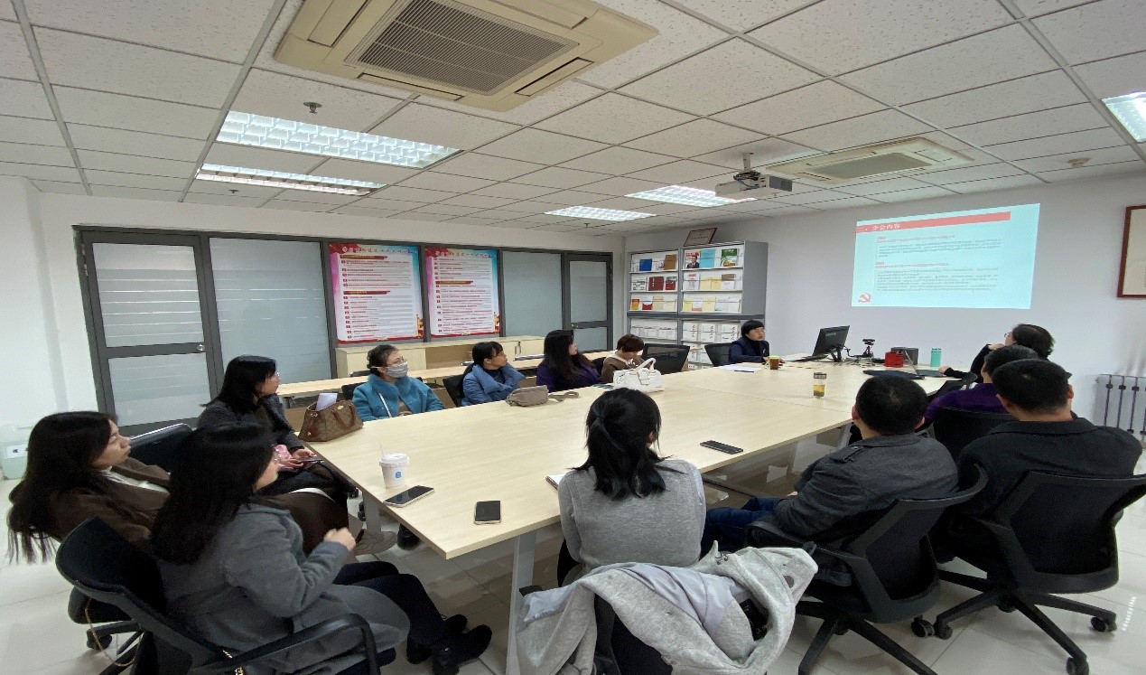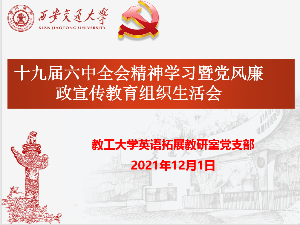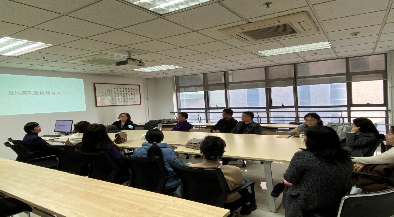 拓展教研室党支部在外文楼B711会议室召开组织生活会,学习十九届六中全会精神进行党风廉政宣传教育。支部书记卢燕华主持会议。