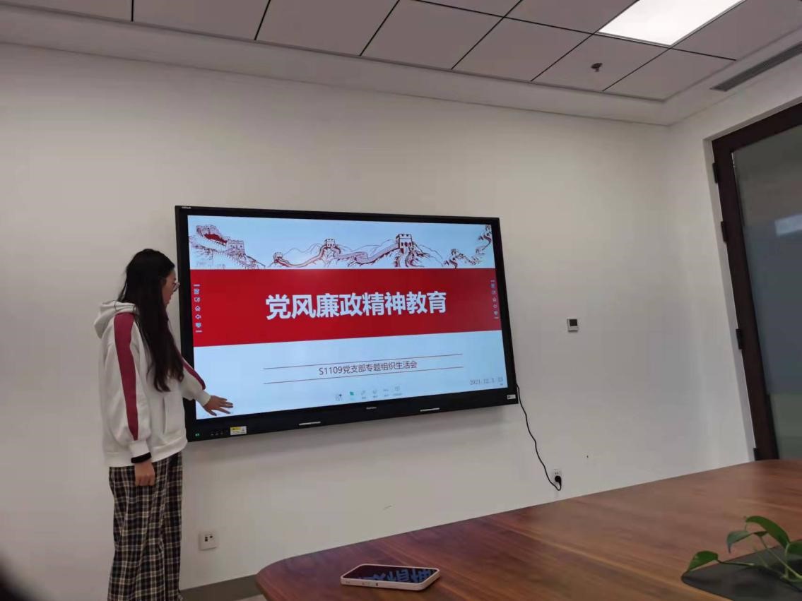 硕1109党支部在涵英楼5125会议室开展 “党风廉政精神教育”主题组织生活。党支部所有同志都按时参会。会议由党支部书记吴鸽主持。