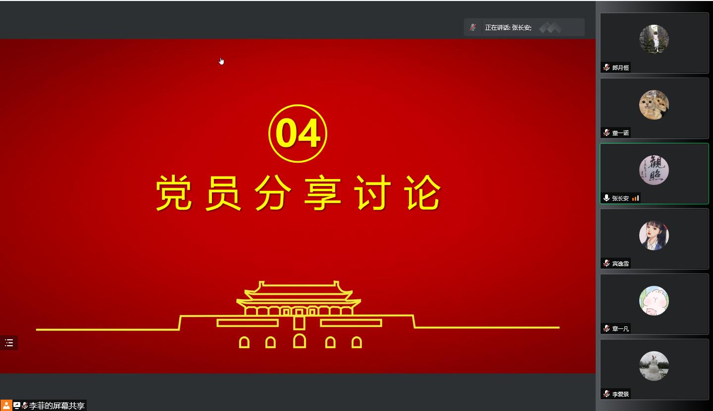 硕1107班党支部召开线上主题党日活动,学院党委书记张长安参会指导,支部所在班级的同学共同参与,会议由支部书记李菲主持。