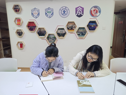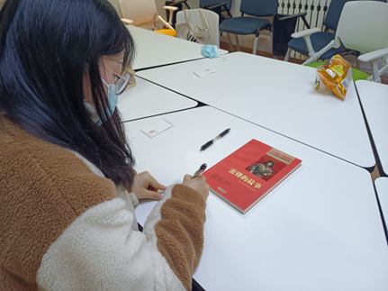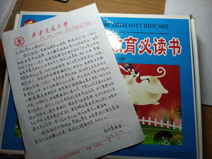 见字如面,寄语可以打破时空距离,将素未谋面的朋友连接在一起。支部的同志们在春暖花开的交大校园,写下了对小朋友们的美好祝愿,随着书香味儿飘进红洞小学教室的窗里。李悦同志在《撒切尔夫人传》扉页写下寄语:“希望读到这本书的你,可以获得她身上的力量”。张雨童同志在给小朋友的信中讲述了自己与这套书的故事,希望他们在读书时也要与结合实际,保留自己的思考。