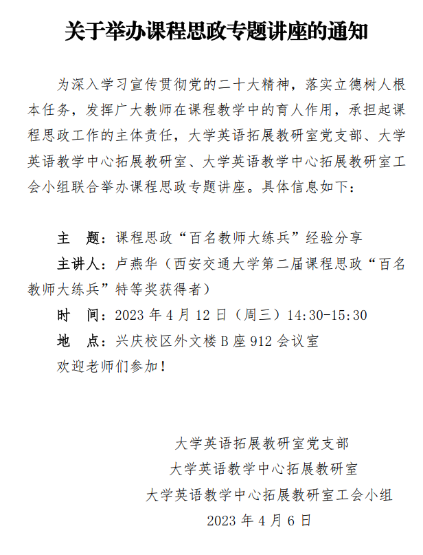 关于举办课程思政专题讲座的通知