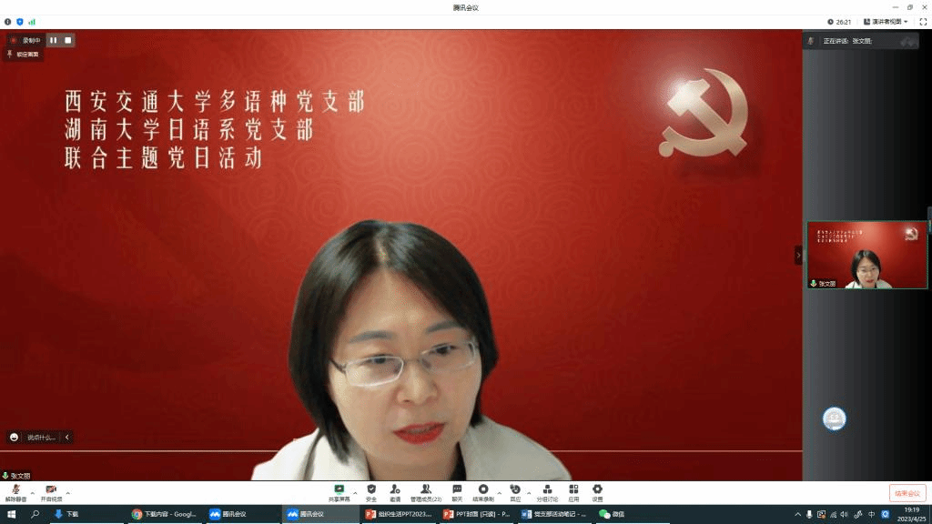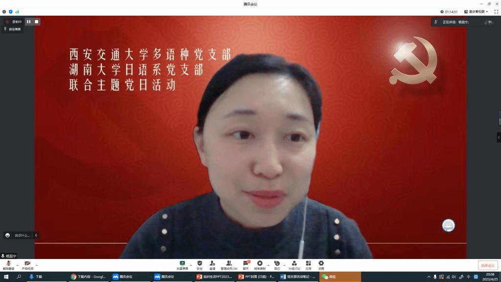 日语系党支部,联合举办线上专题党日活动。会议的主题是重温习近平总书记来校考察重要讲话,心怀“国之大者”建强战斗堡垒,充分发挥党员的模范带头作用。