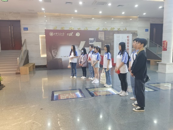 西迁展厅呈现了1956年至2017年间波澜壮阔的交大西迁故事和西迁后学校的发展情况,展出照片图表622幅、实物167件。“向科学进军,建设大西北”的乘车证承载了西迁历史的波澜壮阔,学校没有因为迁校而晚开一天学、迟上一门课、少做一个实验。在感受到筚路蓝缕的奋斗发展历程的同时,支部成员也更加深刻理解了西迁精神的深刻内涵,明确了个人肩负的使命和担当。
