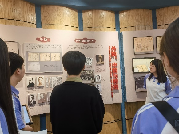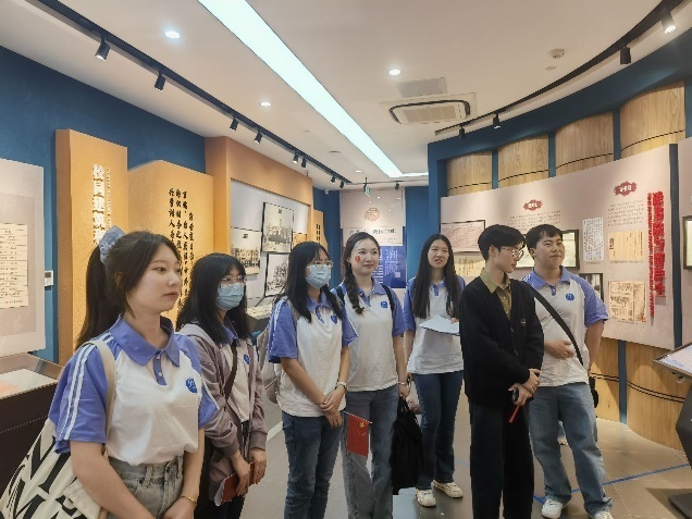 兴学强国的发展历程,展厅陈列出的筹建南洋公学第一份正式文件即1896年盛宣怀《请设学堂片》、1899年《蒙学课本》、张美翊办学函件手迹、唐文治编写《南洋公学新国文》、《大学新读本》和高等小学国文读本、彭康校长翻译的《费尔巴哈论》等,都让支部成员亲身感受当年的历史,感悟报国之情。