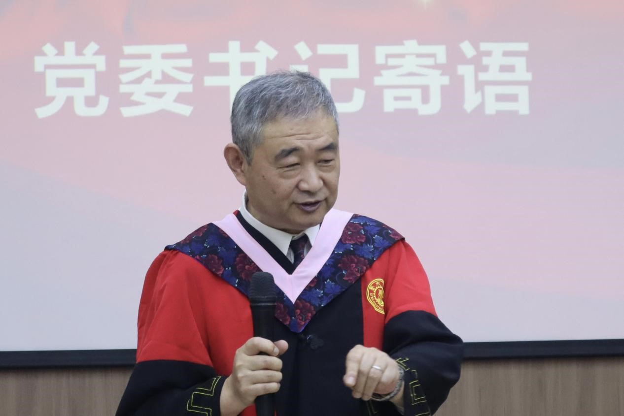 首先由党委书记张长安教授寄语。他阐述了对毕业生党员的嘱托,要将优秀的品质和能力持续贯通,让其成为习惯,践行终身。在精神层面上,要时刻将建党精神和来自交大人的西迁精神铭刻在心,外化于行。在艰苦环境中学会创造条件,突破自我限制,推己及人,引领团队发挥集体力量,在今后持续发挥好党员的先锋模范作用。