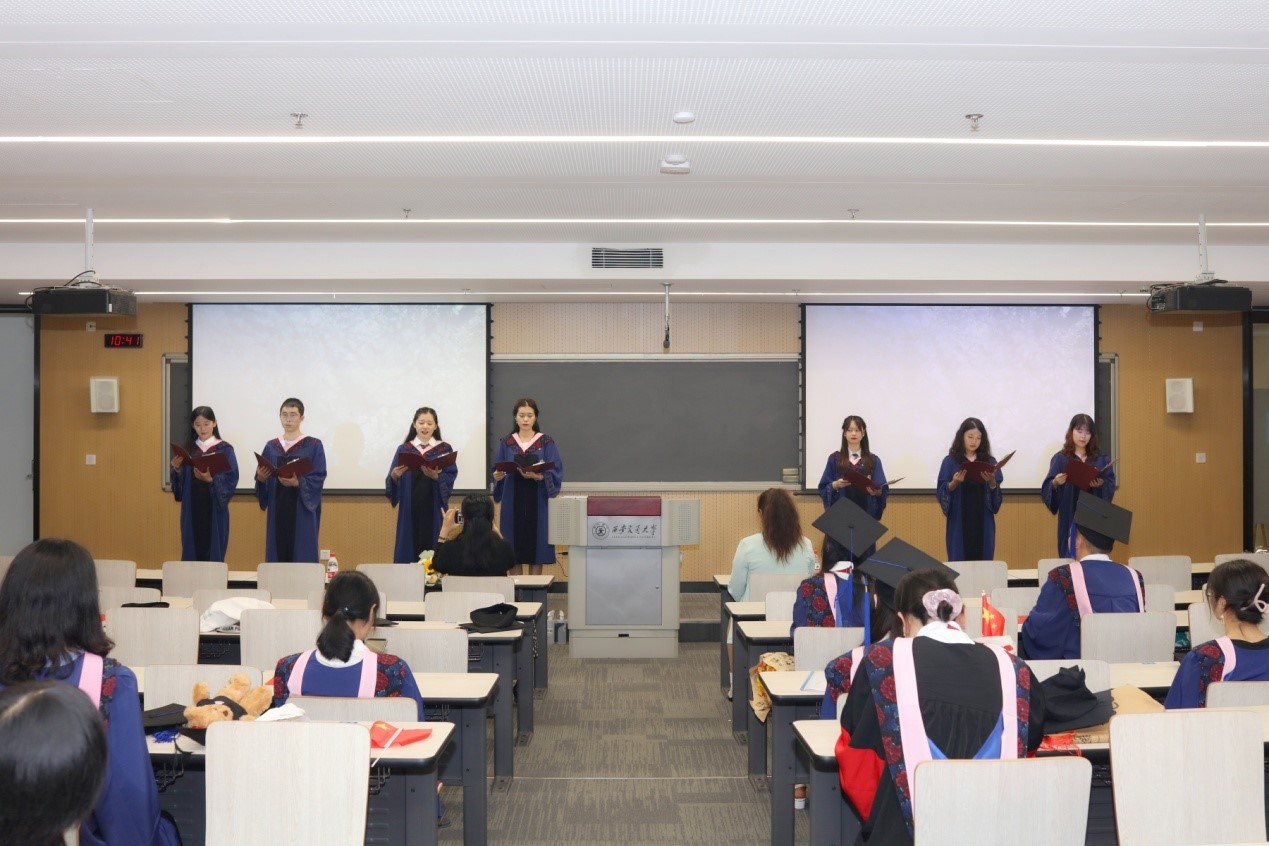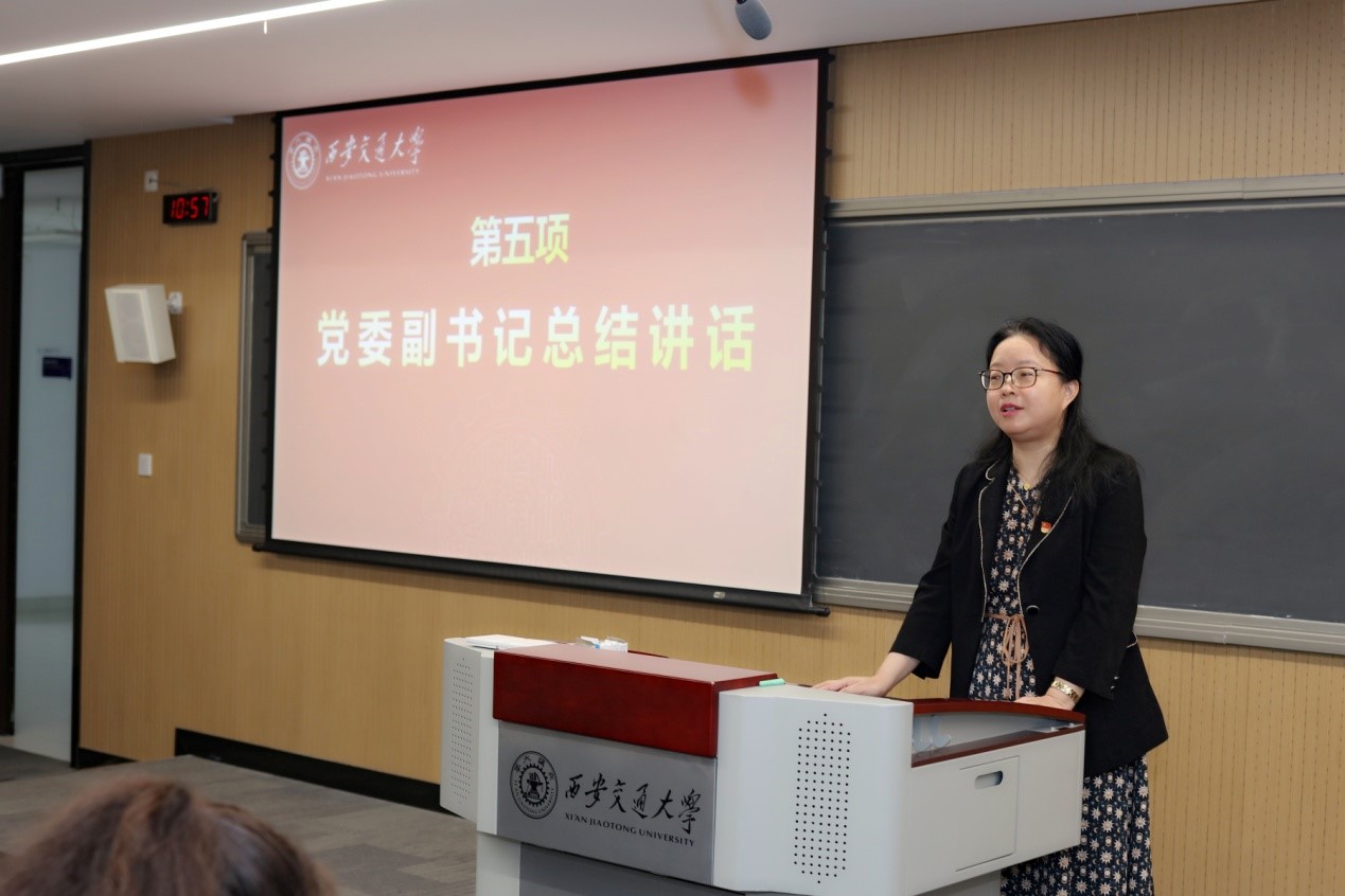 最后,许明老师在总结中表达了学院的祝福和不舍,此外还叮嘱毕业生党员要加强理论学习,厚实理论功底;在岗位上传承西迁精神,弘扬交大传统。做有理想、有担当、有责任、有底线的社会人,做乐观自信、乐于奉献、善于沟通、坚忍不拔的社会人。
