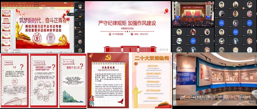 硕1109党支部成立于2021年10月,紧紧围绕学校党委整体部署,在学院分党委的正确领导下,把《中国共产党章程》作为总的政治纲领,把新时期党的基层组织建设作为指导方针,把“党带团,团带班”确定为工作指导策略,推动党建工作的开展,致力于培养“外语+”人才,为讲好西交故事、讲好中国故事贡献力量。