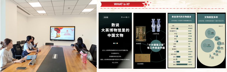 专题组织生活会的第三部分,项祎霖同志以热门短视频《逃离大英博物馆》为例,讨论了杰出文化作品与人民内心的家国情感。她简要介绍了视频内容和创作背景,分析了该短剧走红的原因,并分享了个人观感。在互动环节,赵志强同志表示,文物背后承载的历史与沉淀,是我们无法亲历却不可遗忘的珍贵过去。这些文物才是我们灵魂的源泉,激发了我们身为中国人的使命感和责任感,激励一代又一代中国人为民族复兴不懈努力。