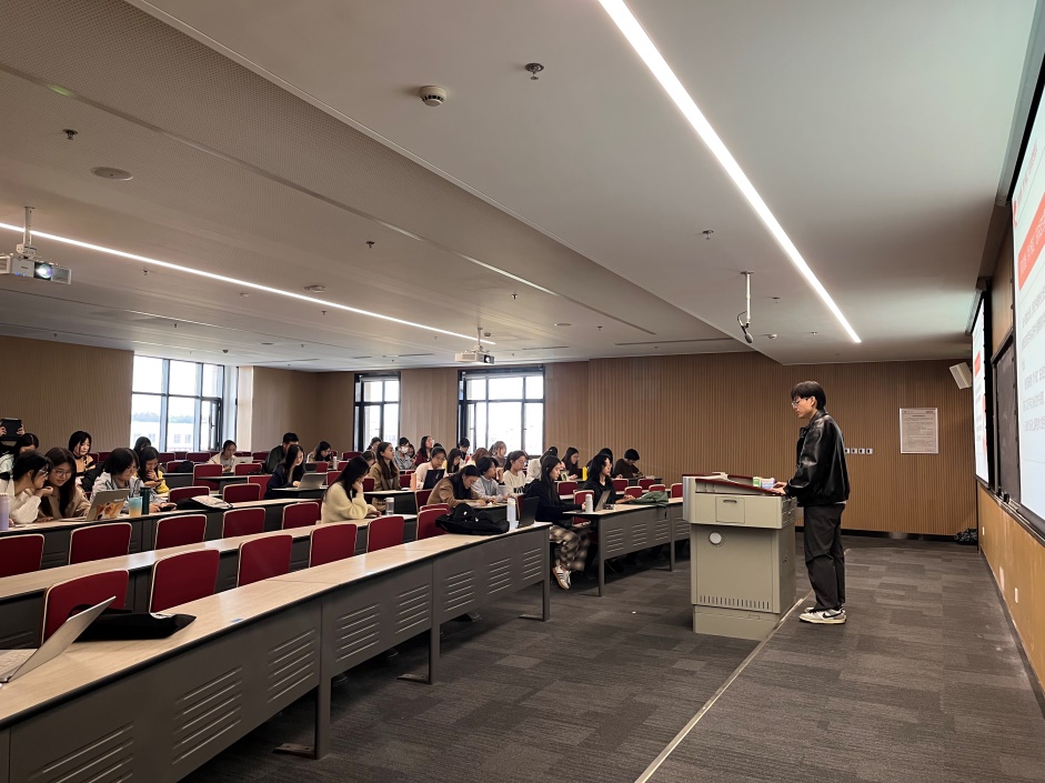 (硕3122班团支书王少男进行坚强核心理论专题讲解)