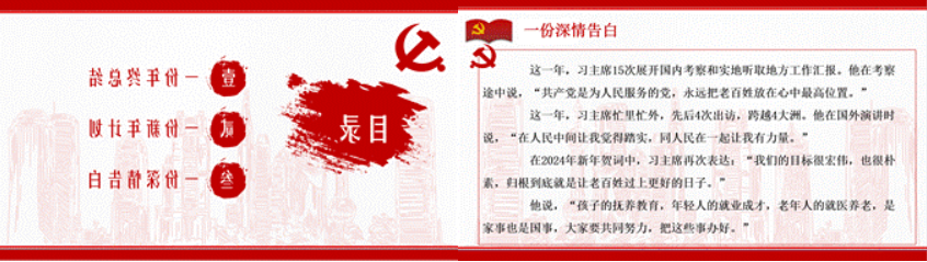 首先,支部全体成员共同观看视频学习近平总书记2024新年贺词。在新年贺词中,习近平主席与全国人民一道,回顾过去一年接续奋斗、砥砺前行的历程,展望新一年的美好蓝图、使命担当。习近平主席为过去一年各行各业挥洒汗水、作出贡献的人们点赞,并指出,人民永远是我们战胜一切困难挑战的最大依靠。今天的中国,处处是拼搏奋斗的身影,处处是日新月异的创造。