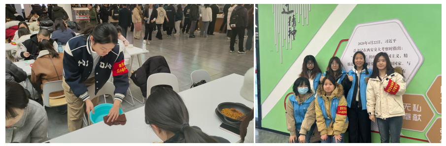 S4123班团支部在同和苑餐厅开展“文明餐桌伴我行”志愿服务活动,同学们组成志愿服务小分队,分工有序擦拭桌面、摆放桌椅、分类筷勺、清理垃圾,协助餐厅工作人员为全体师生营造干净整洁的就餐环境。