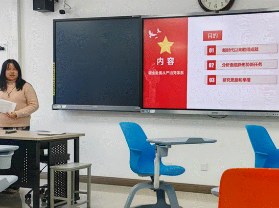 江林芷同学就“健全全面从严治党体系”作领学汇报