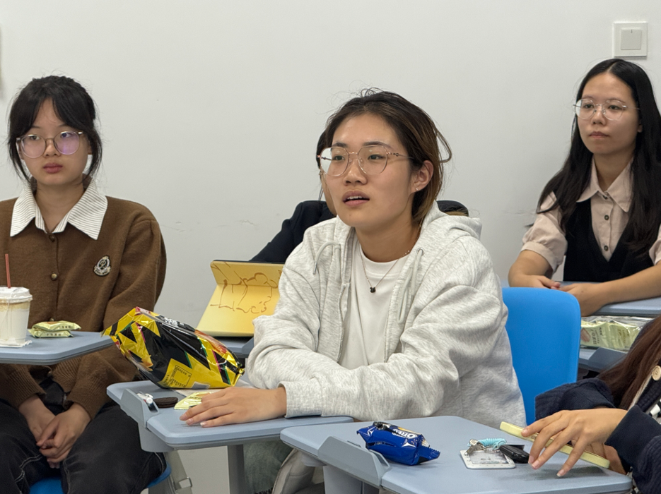 座谈会中,李泽禹同志以“踏花仗剑,行且益坚——我把我的部队生活讲给你听”为题,围绕“我的从军路”,就役前准备、新兵生活、征兵政策、部队优待、发展出路等主题与支部成员展开交流。她将军队里的日与夜娓娓道来——从新兵连的淬火成钢,到下连后的岗位深耕。正如她所说,“当兵后悔两年,不当兵后悔一辈子”,军旅生活收获的磨砺与温暖,对每一位军人都弥足珍贵。
