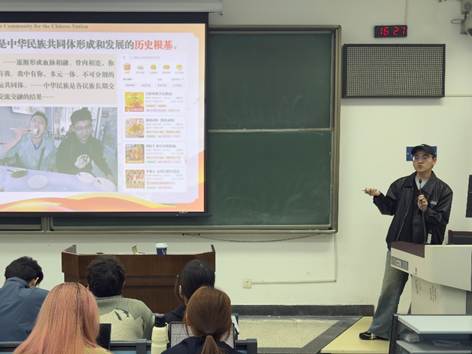 两位少数民族学生用亲身经历和真情实感为这一宏大主题作出了最生动的注脚。来自湖南苗族的刘乙璇同学以家乡的“麻阳龙舟”文化为切入点,深情讲述了这项传统民俗活动如何承载着苗族同胞与各民族交往交流交融的历史记忆,如何在新时代焕发出新的生机活力。来自贵州土家族的陈仁恺雯同学则结合家乡的脱贫攻坚经历,描绘了在国家政策支持下,山区近年来在基础设施建设等方面发生的翻天覆地的变化。