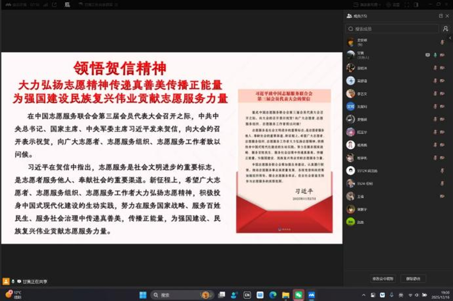 活动伊始,团支书甘黄汉文领学了习近平总书记致中国志愿服务联合会第三届会员代表大会的贺信精神,引导同学们深刻理解“志愿服务是社会文明进步的重要标志”的内涵意义。